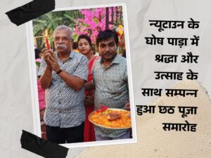न्यूटाउन स्थित घोष पाड़ा क्षेत्र में संग्रामपुर कमेटी द्वारा आयोजित छठ पूजा समारोह इस वर्ष भक्ति और उत्साह का अद्भुत संगम बना। सूर्य देव की उपासना के पारंपरिक अनुष्ठानों के साथ पूरे क्षेत्र में आस्था और सांस्कृतिक एकता का माहौल दिखाई दिया।