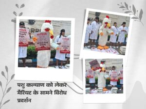 मर्सी फॉर एनिमल्स इंडिया संगठन की पहल पर आज ईएम बाईपास स्थित एक नामी होटल के सामने अनोखा विरोध प्रदर्शन किया गया। इस प्रदर्शन का संदेश था— “मैरियट, पशुओं के दुख पर आँख मत मूँदो, पिंजरामुक्त बनो।”