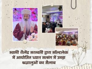 सॉल्टलेक स्थित डाउनटाउन मॉल के मेवाड़ बैंक्वेट हॉल में रविवार को एक आध्यात्मिक माहौल देखने को मिला, जब सैकड़ों ओशो प्रेमी, संन्यासी और साधक प्रसिद्ध ध्यान गुरु स्वामी शैलेंद्र सरस्वती के नेतृत्व में आयोजित विशेष ध्यान सत्संग में शामिल हुए।